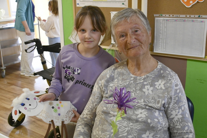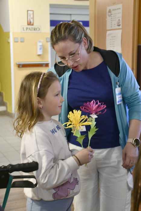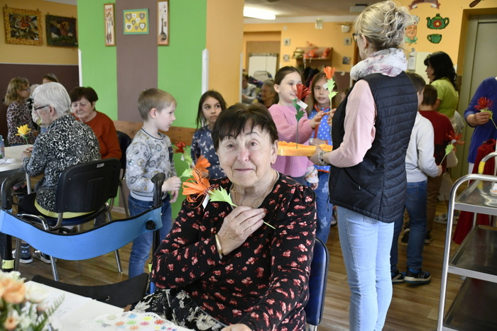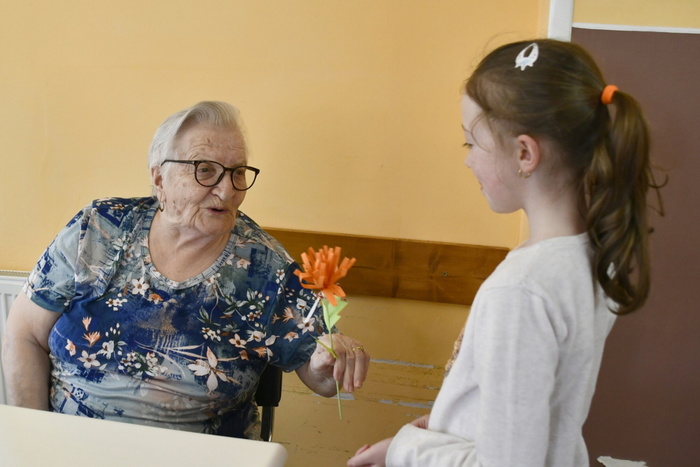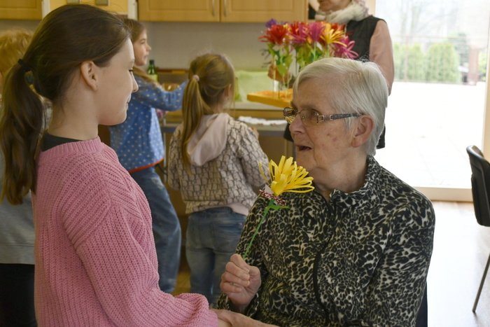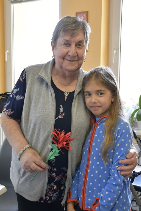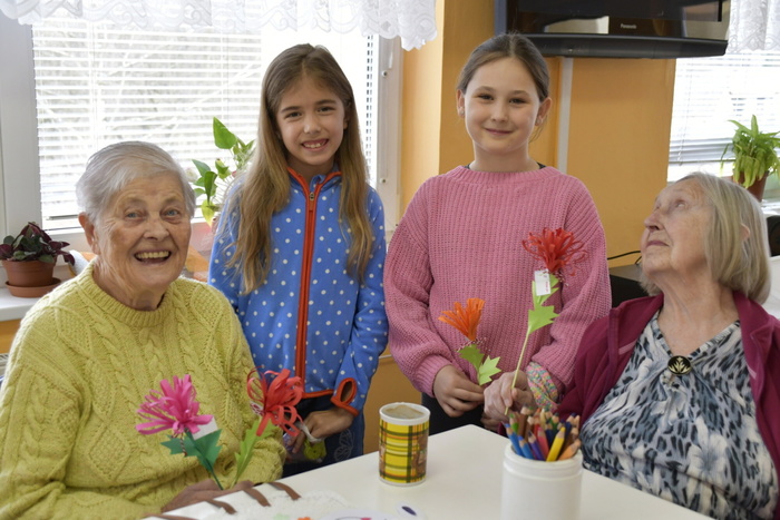 V naší školní družině děti vyrobily papírové květiny, které s přáním krásného jara předávaly dojatým seniorům a pracovnicím z aktivizačního oddělení. Zmíněné pracovnice předaly dětem za odměnu sušenky.