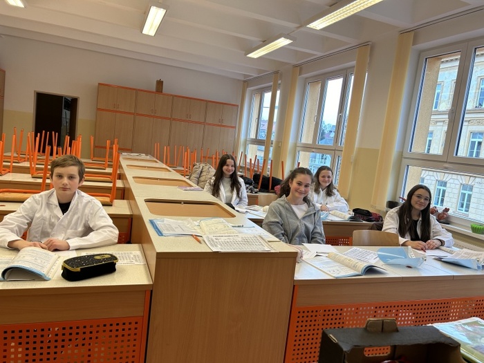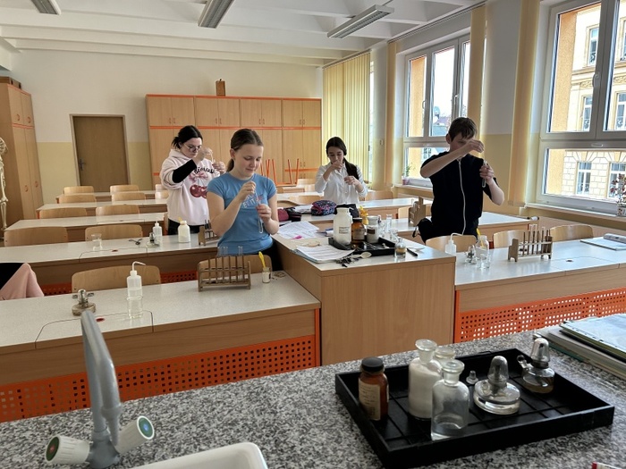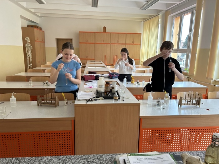 Chemické olympiády ve školním roce 2025/2026 se na naší škole účastnilo šest žáků devátých ročníků. Každé kolo olympiády (domácí, školní, okresní, krajské) se skládá ze dvou částí, teoretické a praktické. Podle získaných bodů se všech šest žáků se dostalo do okresního kola olympiády.