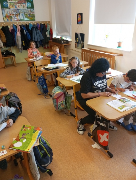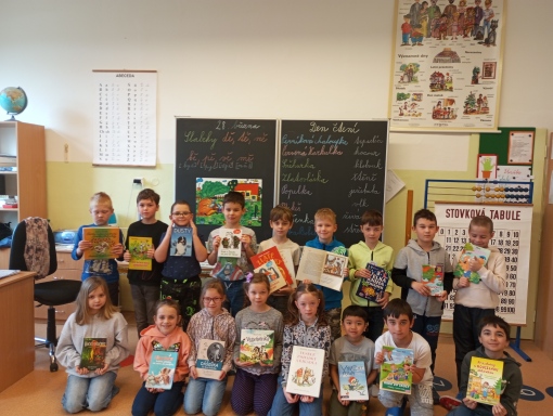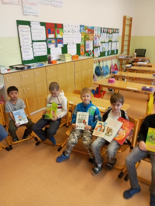 Děti se seznámmili s dětskou literaturou, s názvy pohádek a s pohádkovými postavami. Každý žák si přinesl svoji nejoblíbenější knížku a prezentoval ji před spolužáky. Žáci si namalovali obálku své knihy. Dále jsme četli úryvek z knihy Pohádky z pařezové chaloupky Křemílka a Vochomůrky. Děti pracovaly ve dvojicích s textem a plnily úkoly. Na závěr jsme shlédli pohádku od Josefa Čapka Jak si pejsek roztrhl kalhoty. Den se vydařil.