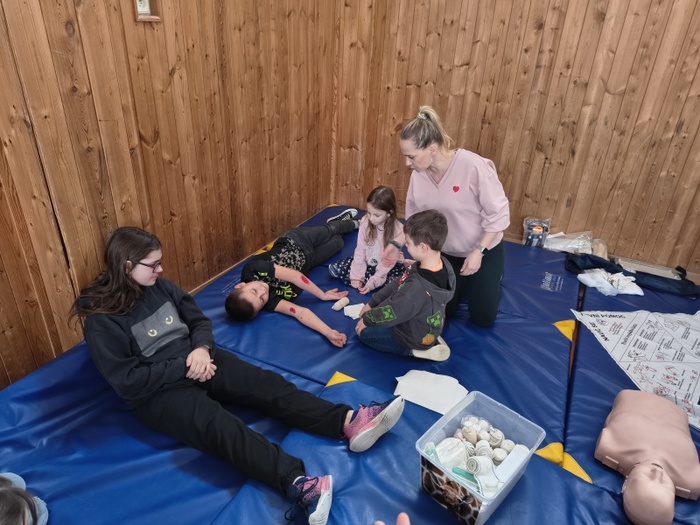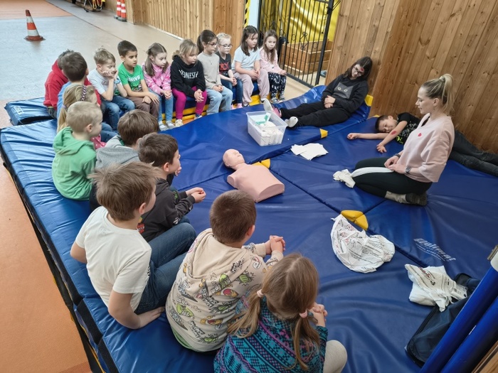 S paní Kolářovou jsme si zopakovali základní informace o poskytnutí první pomoci a někteří si vyzkoušeli resuscitaci na figuríně.