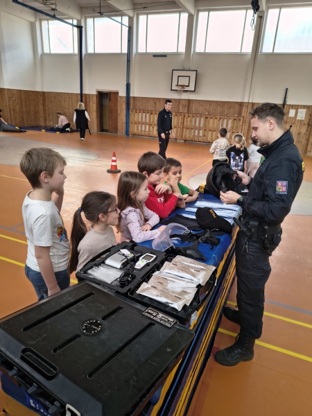 Účastníci měli možnost si prohlédnout policejní auto, vybavení pro zásahovou jednotku a vyzkoušeli si, jak těžká je neprůstřelná vesta.