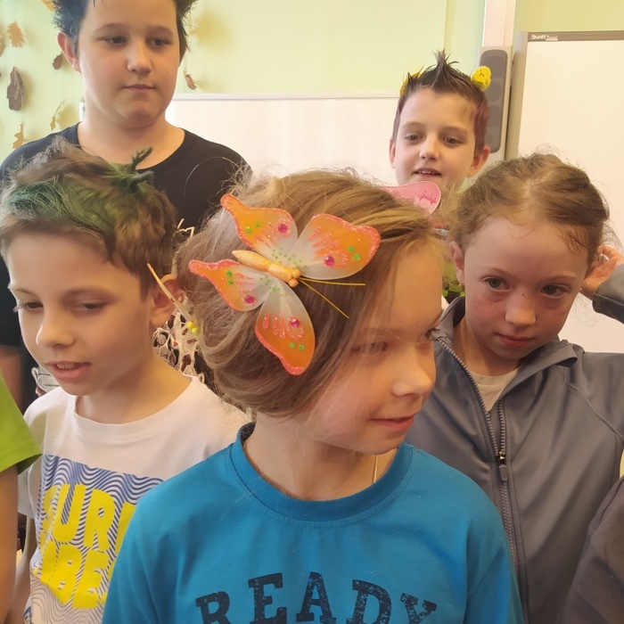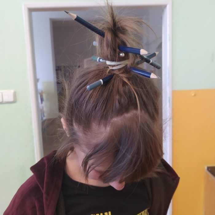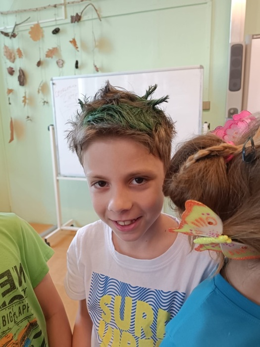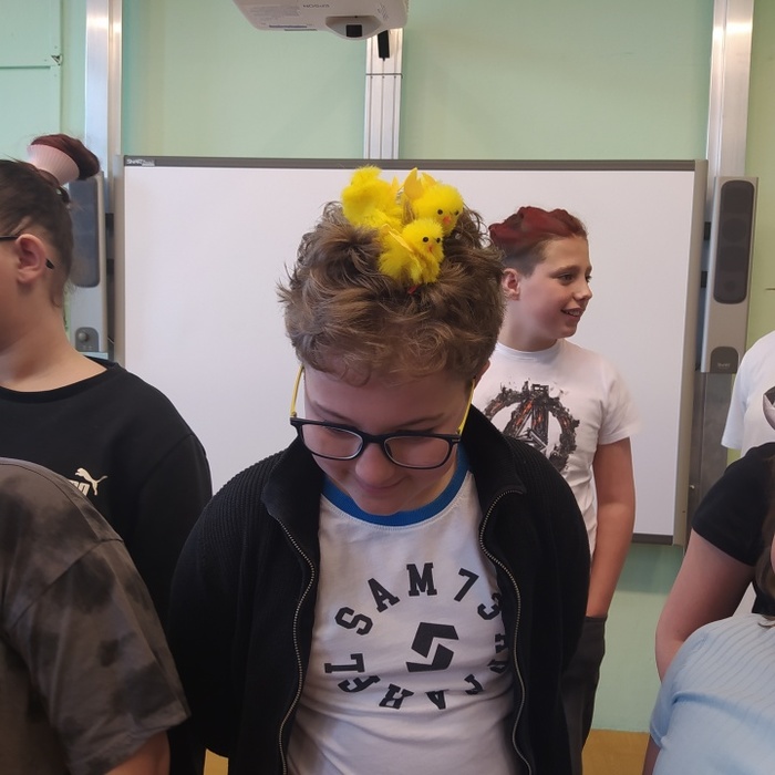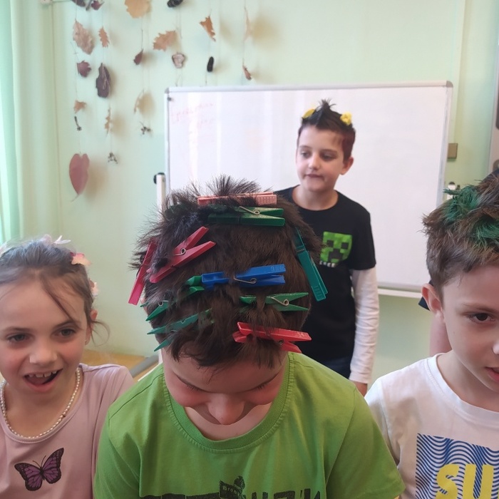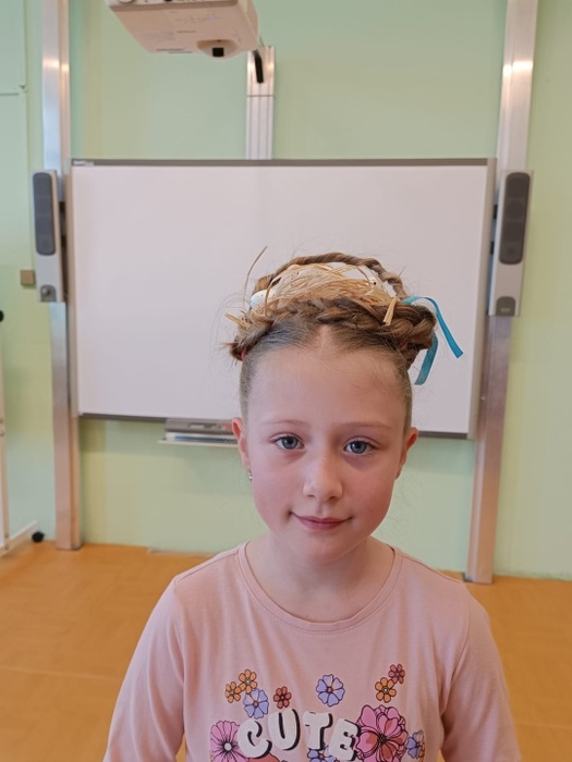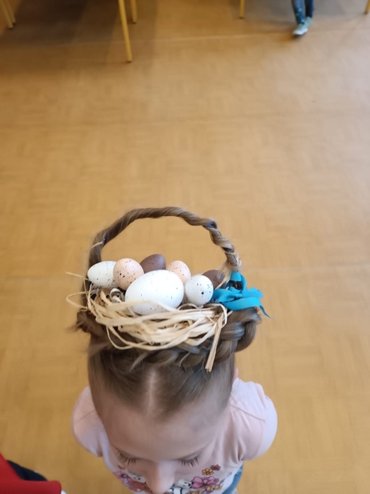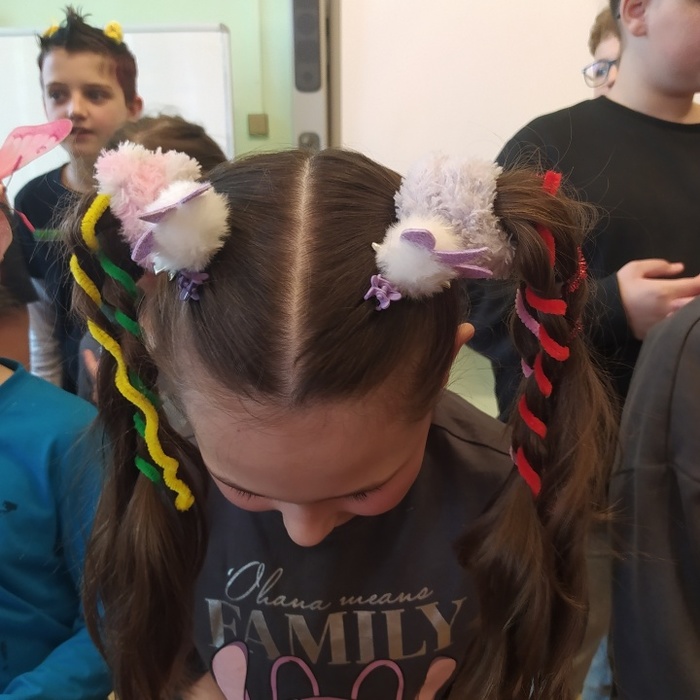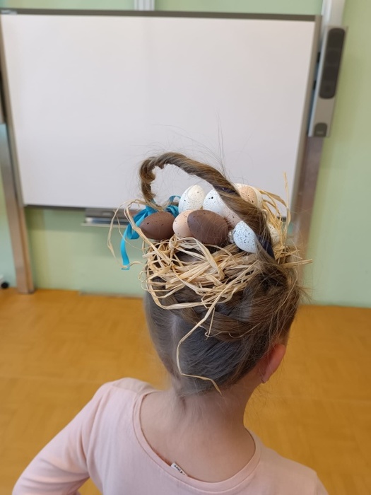 Den šílených účesů je mezi žáky oblíbená akce. Letošní výzva byla na 16. dubna a měla téma - Jarní barvy a motivy. Ve vlasech 95 účastníků bylo možné vidět zajíčky, kuřátka, kolíky, pastelky, pomlázku, dětskou stavebnici a velké množství květin v nádherných jarních barvách. Zvláštní kategorií byla ptačí hnízda a různé pochutiny, některé dokonce na talíři s příborem. Největší obdiv získal z vlasů upletený košík plný slámy a vajec. Jistě velmi pracné a časově náročné pro tvůrce i nositelku. Chválíme nápad i provedení. Pedagogové školy ocenili čím dál větší kreativitu a nasazení při tvorbě účesů.