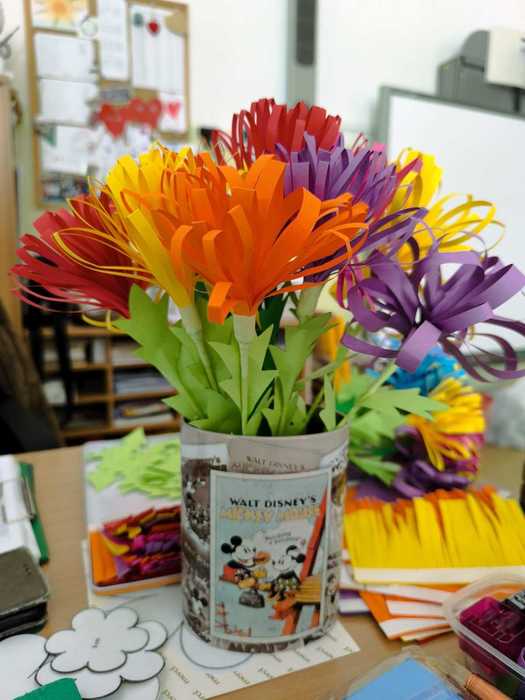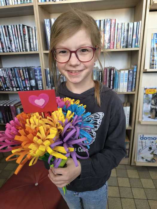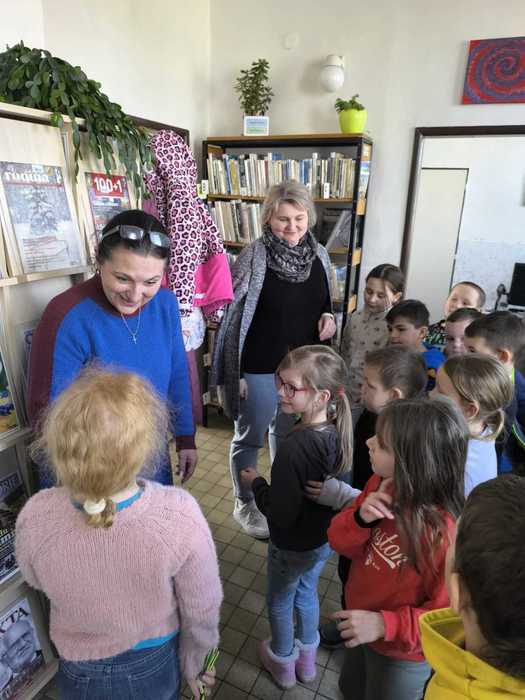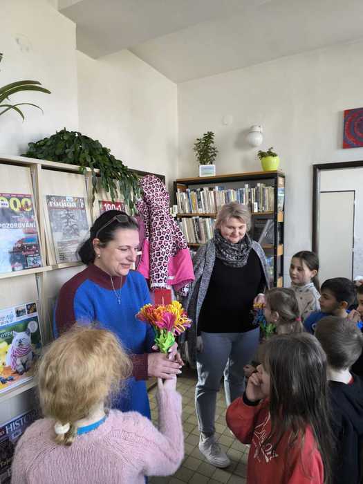 Po měsíci jsme navštívily s dětmi naše oblíbené místo, kterým je místní městská knihovna. Slunečné počasí nás doprovázelo, a tak byla samotná cesta k budově knihovny příjemným zážitkem. Paní knihovnice již na nás čekaly. Děti pro ně vyrobily krásné papírové květiny k MDŽ.