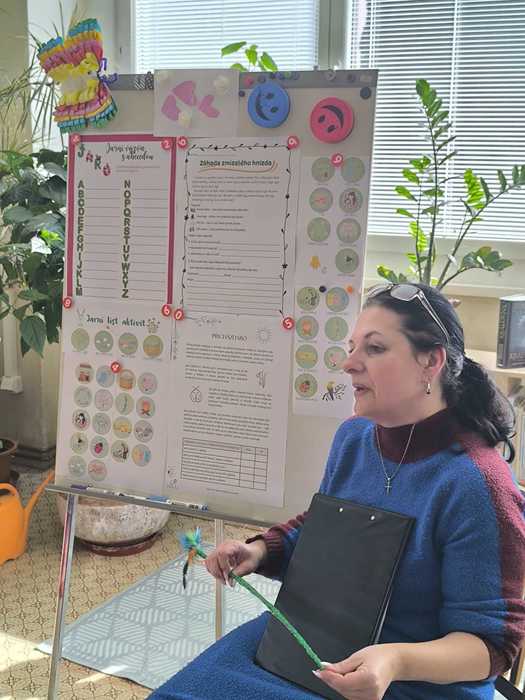 Tématem měsíce března bylo jaro. Paní knihovnice nám přečetla pohádku se zápletkou „Záhada zmizelého hnízda“, kterou děti následně rozluštily. Procvičily si jarní abecedu a prohlédly si knihy s jarní tématikou.