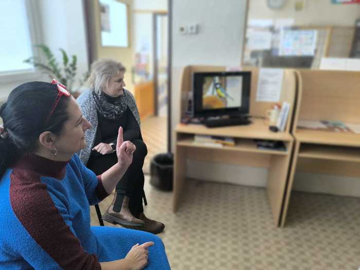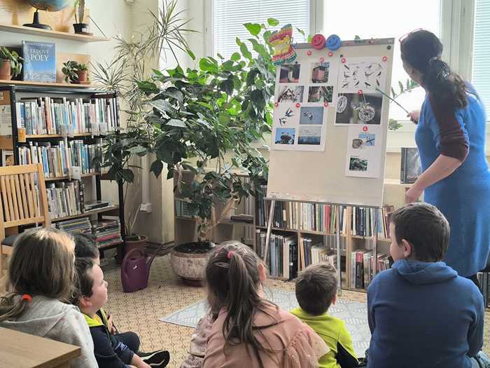 Program začal krátkou prezentací o nejběžnějších ptácích, které můžeme spatřit v našem okolí. Součástí prezentace byly krásné fotografie a nahrávky ptačího zpěvu, které děti s nadšením poslouchaly. Zvládly rozeznat vrabce, kosa nebo sýkorku. Také se dozvěděly, co mají ptáci rádi k snědku. Po prezentaci následovala i čtenářská část, ve které se děti seznámily s knihou „Kamil neumí létat“. Kniha byla doplněna nádhernými ilustracemi, které děti zaujaly. Další zajímavou knihou, která u dětí vzbudila úsměvy, byla kniha vtipů s názvem „Kůň v kině“.