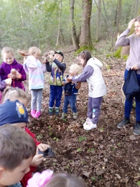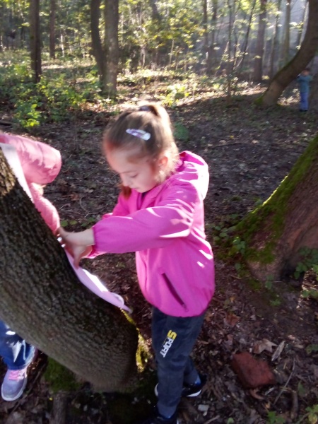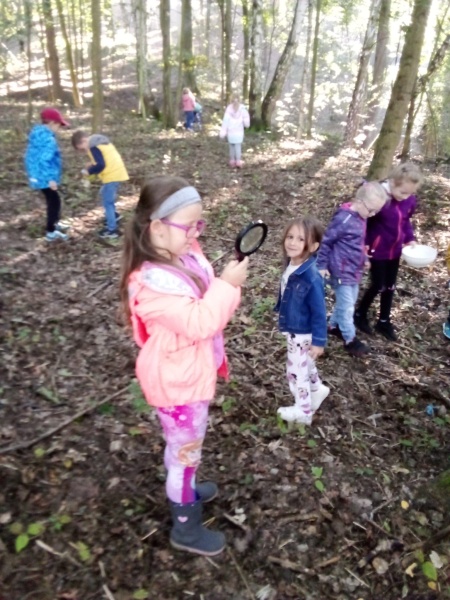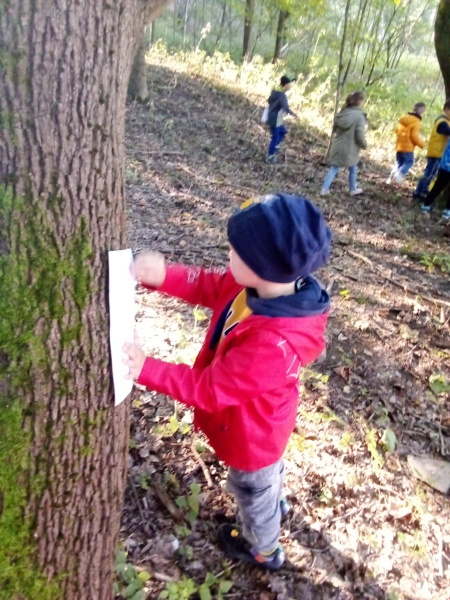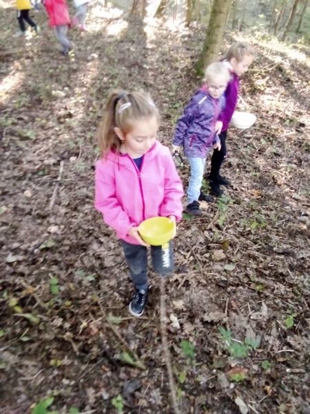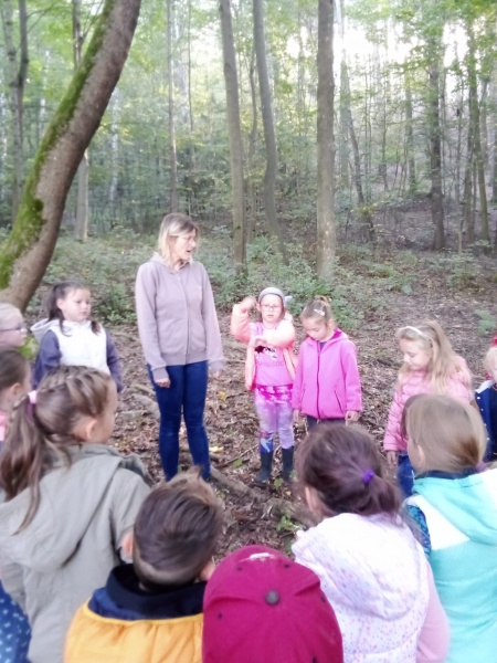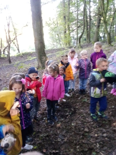 23.9. nás letos poprvé navštívila p. Dvořáková z ekocentra Tři Sekery. Pro děti měla připravený program na téma ,,Život v lese." Určovali některé druhy stromů, pracovali s lupou - pozorovali drobné živočichy, děti si vytvořily otisk kůry a podzimní paletu z přírodnin.