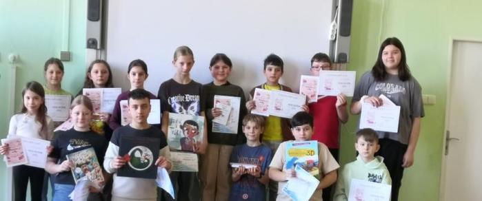 Nejlepší čtenáři obdrželi věcné ceny, které do soutěže věnovalo vedení naší školy, Mgr. Lenka Hrušková Bursová, MBA a Mgr. Markéta Spiříková.