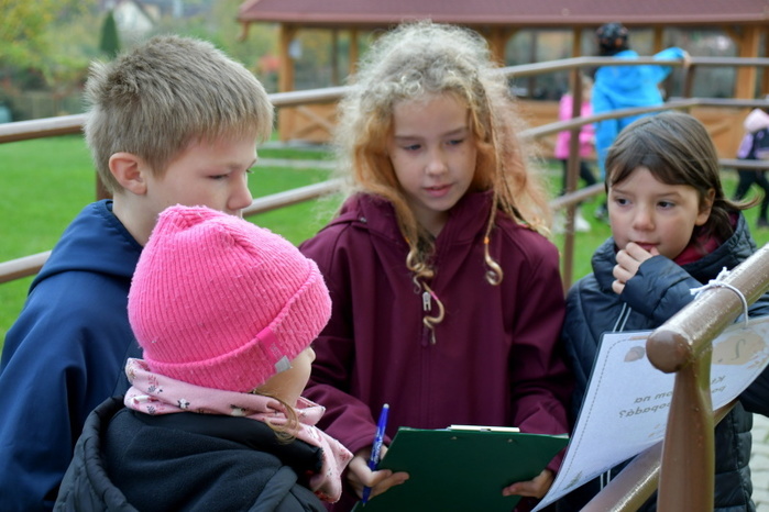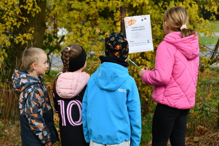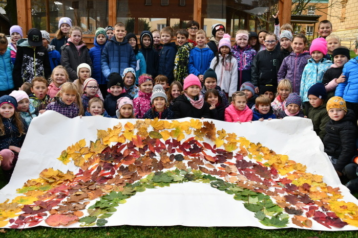 Byl to náš den. Moc jsme se těšili. Ve čtvrtek ráno jsme neseděli v lavicích, jako obvykle, ale šli jsme pěkně ven na celé dopoledne. Naše paní učitelky si pro nás připravily přírodovědnou stezku plnou poznatků a informací o různých stromech. Seřadili jsme se za školou. Paní uč. Havlíčková nás přivítala a vysvětlila pravidla. Vytvořili jsme skupinky kamarádů z 1. 2. a 3. ročníků. My starší třeťáci jsme zapsali jména a měli jsme to všechno na povel. Vyrazili jsme. Cestou jsme plnili úkoly. Všichni jsme spolupracovali a radili se. Byli jsme překvapeni, co toho naši mladší kamarádi věděli. Všechno jsme hravě zvládli. Odměnou byla soutěž „O nejhezčího šklebíka“. Bylo to super. Paní asistentka Janička naše šklebíky vyfotografovala a paní učitelka Urbánková z našich fotografií vytvořila prezentaci – a my jsme hlasovali. Den pokračoval lehkými duhovými krůčky do své druhé poloviny. V zahradní učebně jsme s paní učitelkou Svobodovou vytvořili nádhernou duhu z barevných listů. My všichni prvňáci, druháci a třeťáci moc děkujeme za krásný DEN STROMŮ. A přáli bychom si více takových dnů. Děkujeme: p. uč. Šulcové, Procházkové, Mannertové, Svobodové, Švédové, Urbánkové, Havlíčkové, Tomsové, Ladányi.