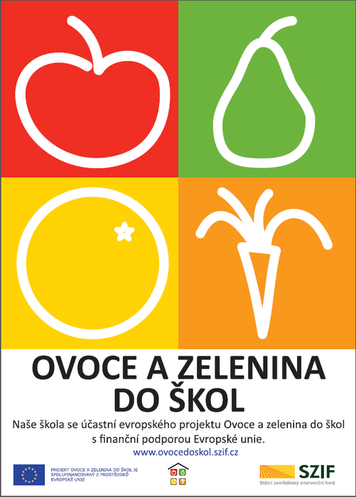 Naše škola je zapojena do projektu Ovoce a zelenina do škol. Jeho základním cílem je přispět k trvalému zvýšení spotřeby ovoce a zeleniny a vytvořit správné stravovací návyky ve výživě dětí. Cílovou skupinou jsou žáci prvního stupně a děti z přípravné třídy. Ovoce a zeleninu dodává dvakrát měsíčně LAKTEA, o. p.s.