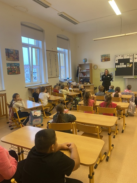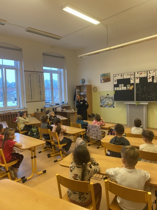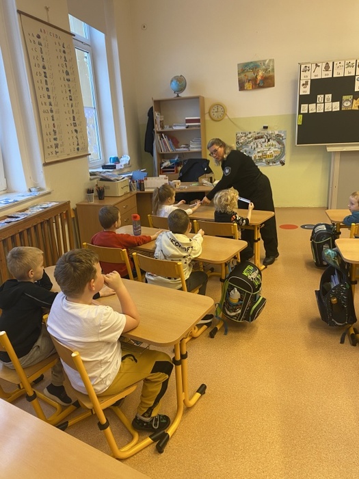 Ve středu 26.11. nás ve škole navštívila Městská policie. Policistka dětem osvěžila vědomosti o bezpečnosti silničního provozu formou hry. Děti za svou snahu dostaly i malou odměnu.