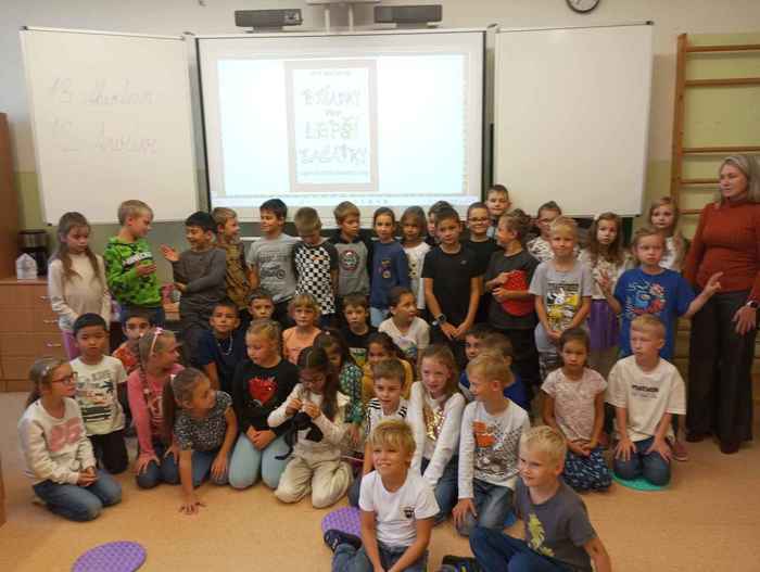 Dnes 26. září se druháci opět sešli se spisovatelem dětské literatury s Petrem Březinou. Spisovatel píše pohádky, které v sobě skrývají určitá ponaučení zaměřená na prevenci chování mezi lidmi, Děti se seznámily s dalšími pohádkami, které na ně ještě čekají. Beseda se dětem líbila.