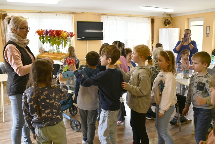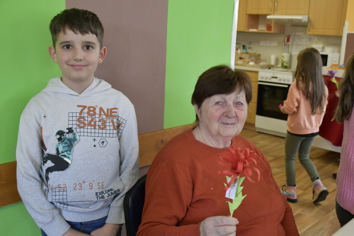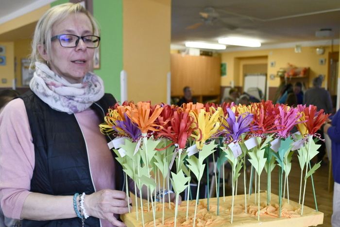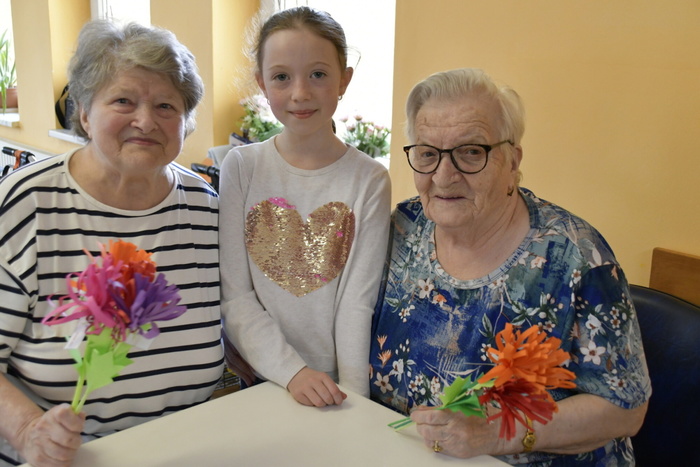 V naší školní družině děti vyrobily papírové květiny, které s přáním krásného jara předávaly dojatým seniorům a pracovnicím z aktivizačního oddělení. Zmíněné pracovnice předaly dětem za odměnu sušenky.