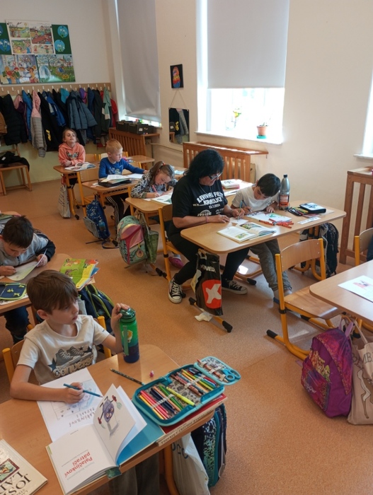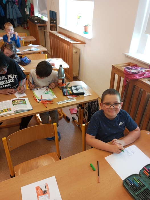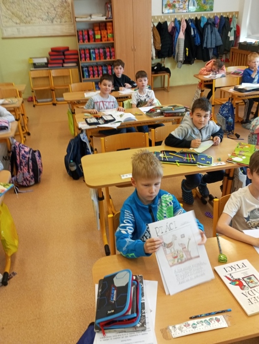 Děti se seznámmili s dětskou literaturou, s názvy pohádek a s pohádkovými postavami. Každý žák si přinesl svoji nejoblíbenější knížku a prezentoval ji před spolužáky. Žáci si namalovali obálku své knihy. Dále jsme četli úryvek z knihy Pohádky z pařezové chaloupky Křemílka a Vochomůrky. Děti pracovaly ve dvojicích s textem a plnily úkoly. Na závěr jsme shlédli pohádku od Josefa Čapka Jak si pejsek roztrhl kalhoty. Den se vydařil.