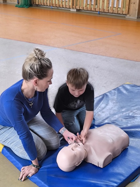 Dozvěděli jsme se základní informace o poskytnutí první pomoci, vyzkoušeli si chůzi s brýlemi simulující vidění (vnímání) osob ovlivněných alkoholem, někteří si vyzkoušeli resuscitaci na figuríně a paní policistka s námi probrala jaké dopravní předpisy musíme dodržovat jako chodci a cyklisté.