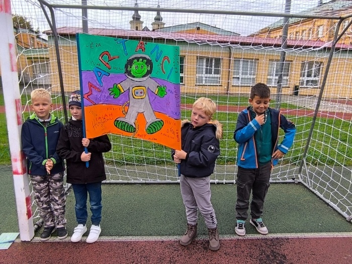 Posádka 2. oddělení ŠD vymyslela název „Marťánci“ a dle toho vypadá i jejich vlajka. Skvělé.