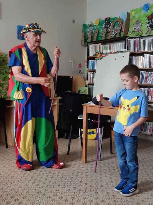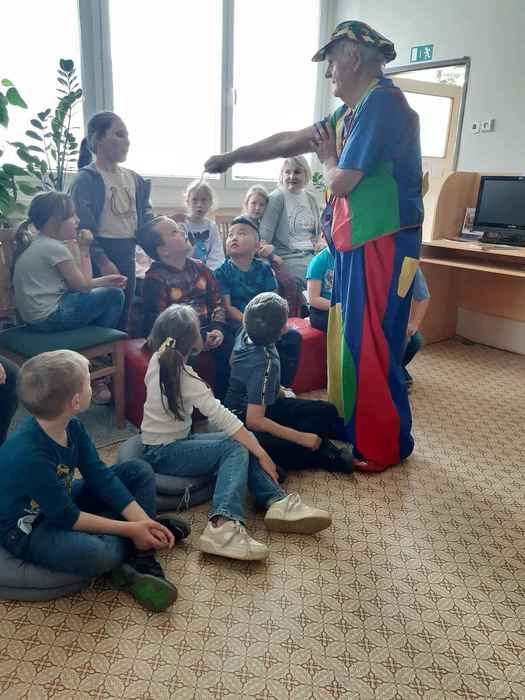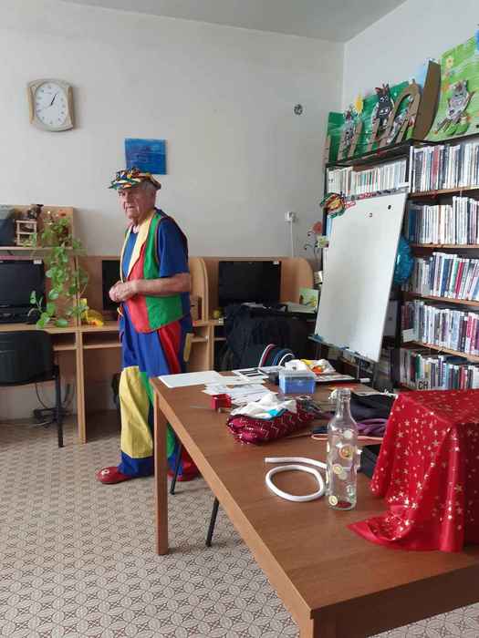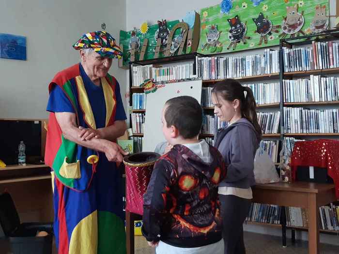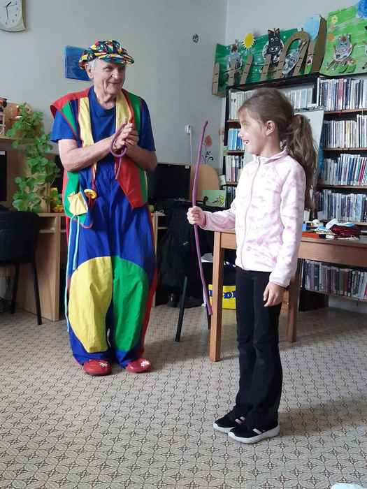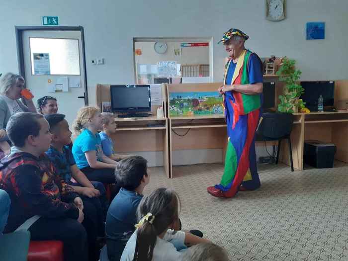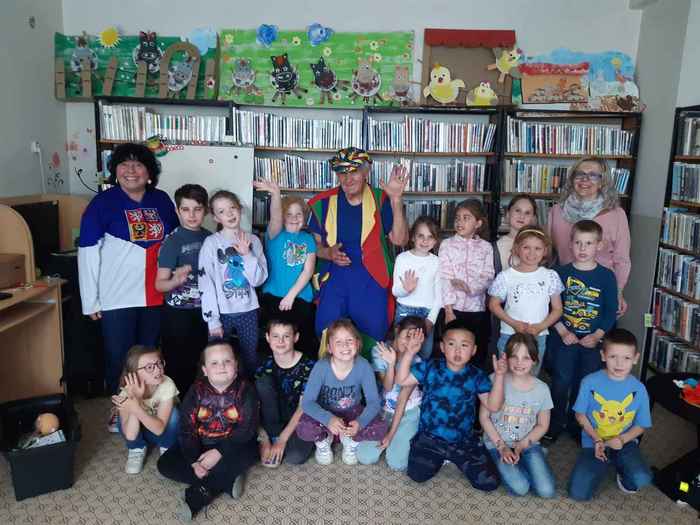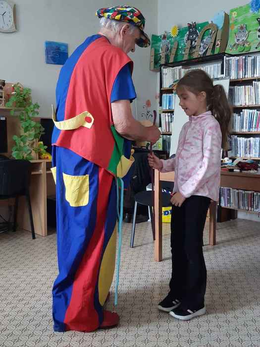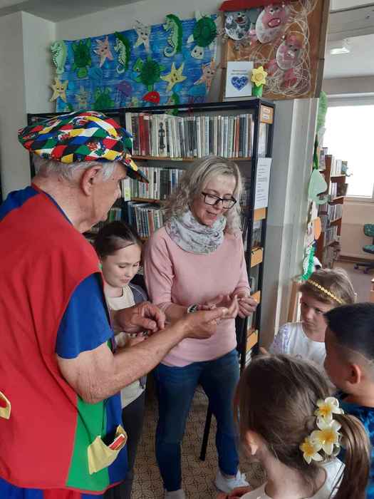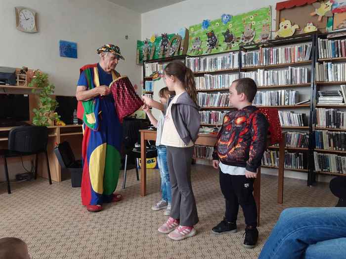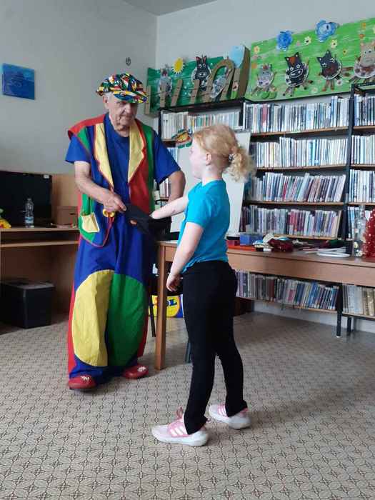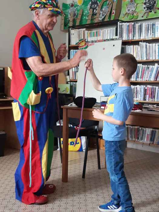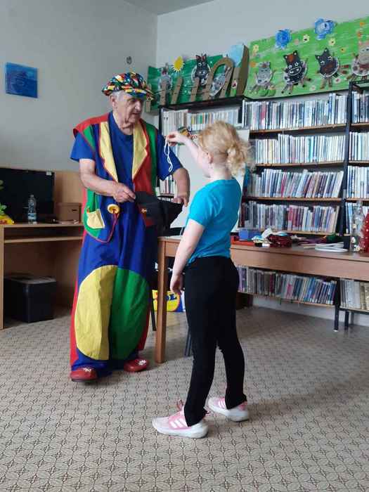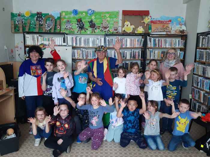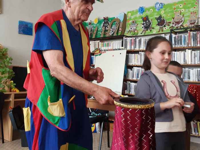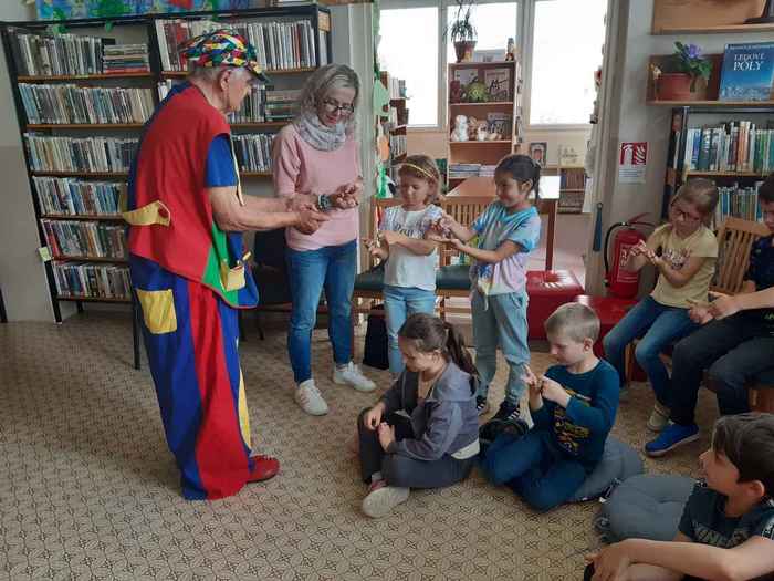 Dne 20. 5. 2025 jsme se s dětmi ze školní družiny vydaly na mimořádnou návštěvu místní knihovny. Nešlo však o obyčejnou návštěvu plnou knih. Tentokrát na nás čekalo skutečné překvapení. Knihovna přivítala speciálního hosta – kouzelníka, který připravil pro děti představení plné zábavy, smíchu a překvapení. Kouzelník do vystoupení zapojil i samotné děti, které mu pomáhaly s jednotlivými triky. Čarovalo se s hůlkou, kšiltovkou, provázky, šňůrkami, šátky a nesměla chybět kouzla s kartami. Obzvlášť zdařilými kousky bylo kouzlení s omalovánkami a obarvování pejska puntíky. Pan kouzelník nás všechny naučil prstový trik, který jsme si zkoušeli tak dlouho, než jsme ho všichni zvládli.