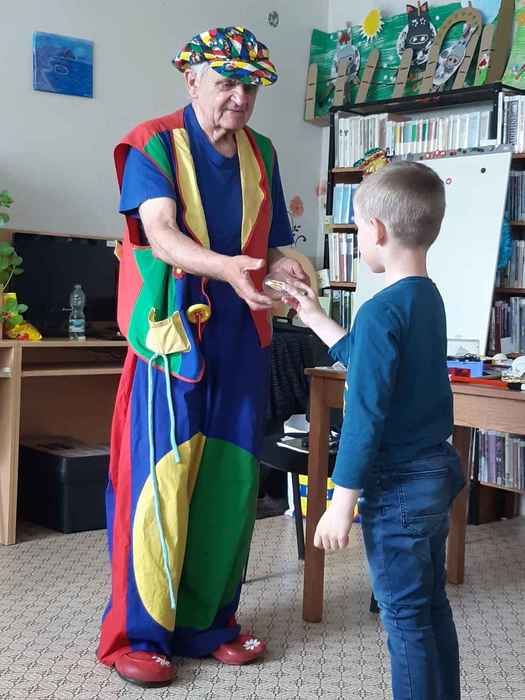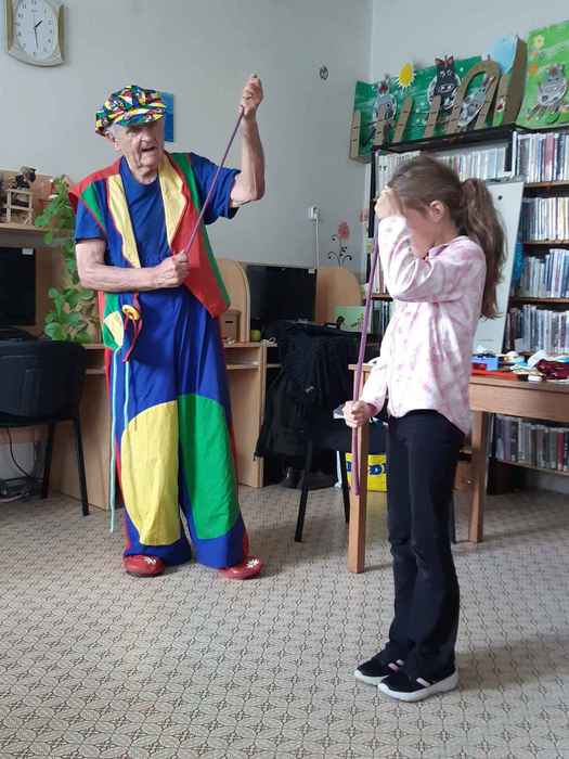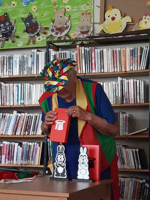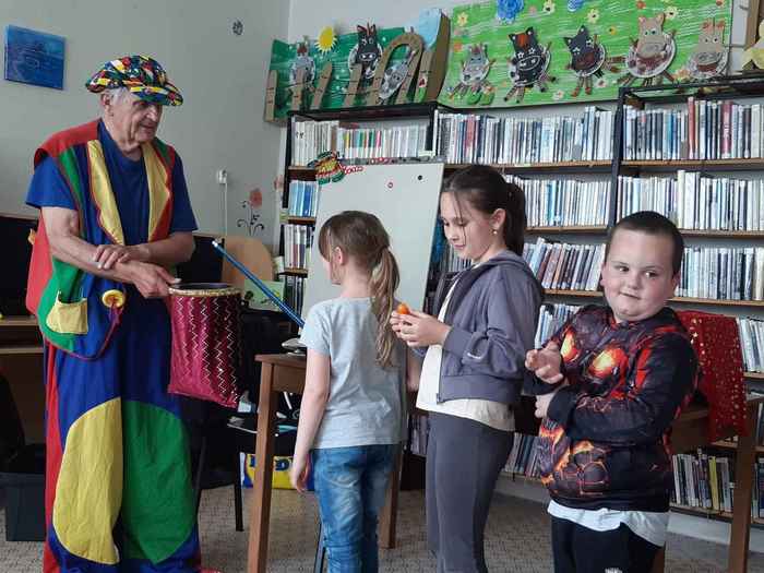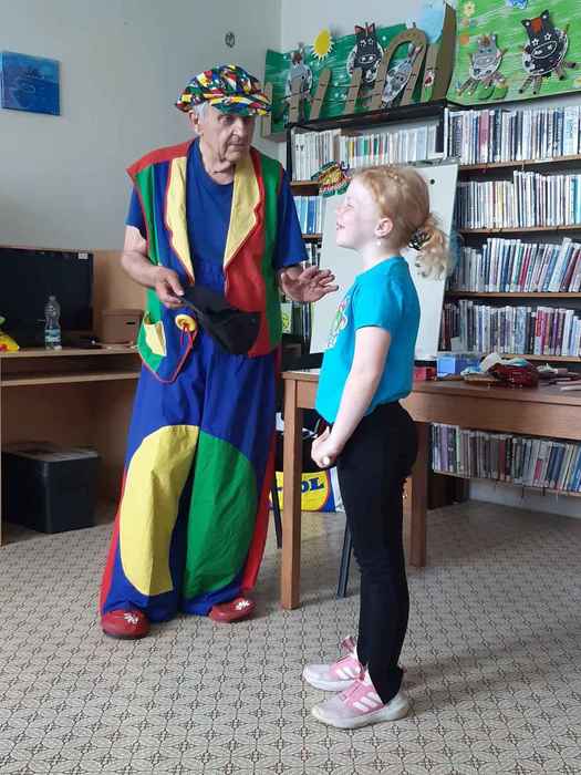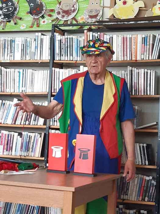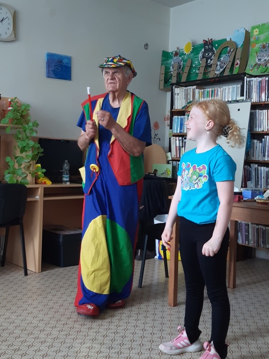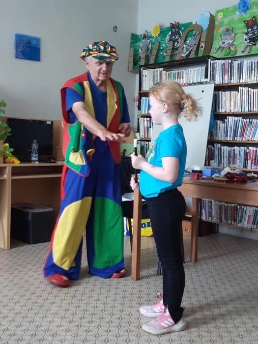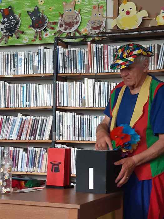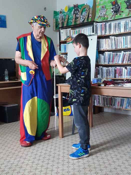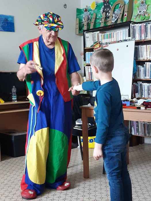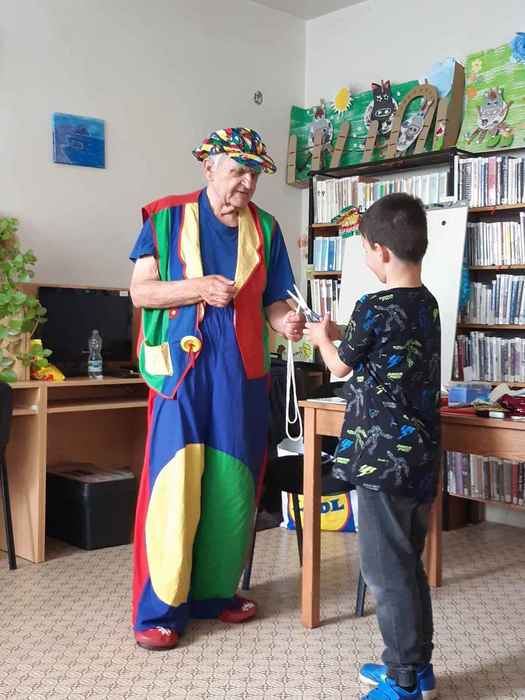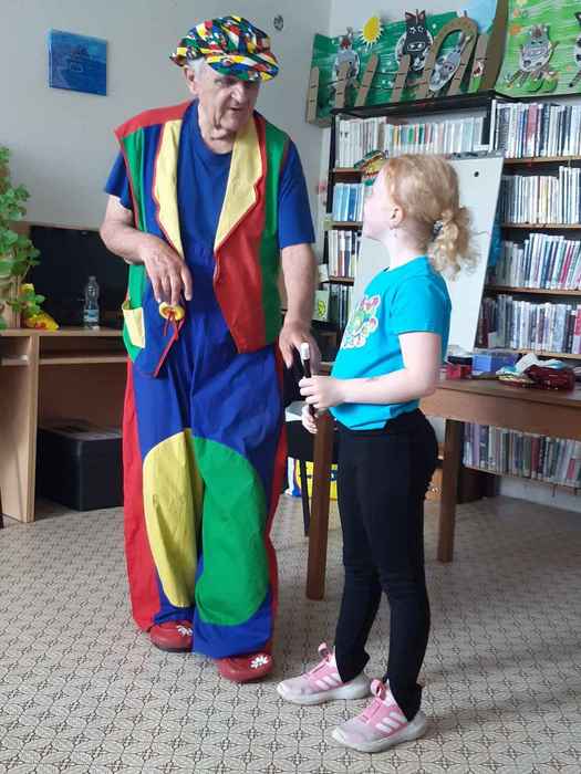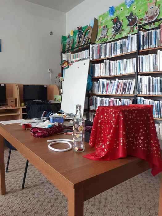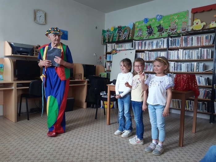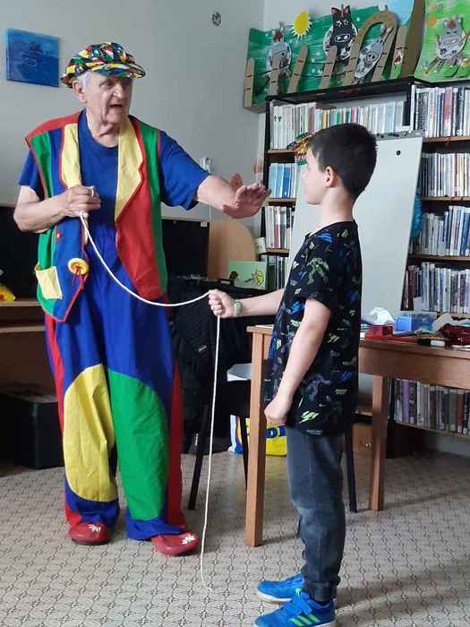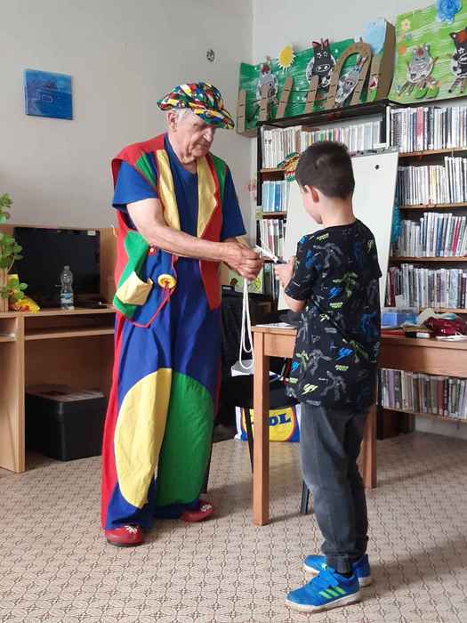 Dne 20. 5. 2025 jsme se s dětmi ze školní družiny vydaly na mimořádnou návštěvu místní knihovny. Nešlo však o obyčejnou návštěvu plnou knih. Tentokrát na nás čekalo skutečné překvapení. Knihovna přivítala speciálního hosta – kouzelníka, který připravil pro děti představení plné zábavy, smíchu a překvapení. Kouzelník do vystoupení zapojil i samotné děti, které mu pomáhaly s jednotlivými triky. Čarovalo se s hůlkou, kšiltovkou, provázky, šňůrkami, šátky a nesměla chybět kouzla s kartami. Obzvlášť zdařilými kousky bylo kouzlení s omalovánkami a obarvování pejska puntíky. Pan kouzelník nás všechny naučil prstový trik, který jsme si zkoušeli tak dlouho, než jsme ho všichni zvládli.