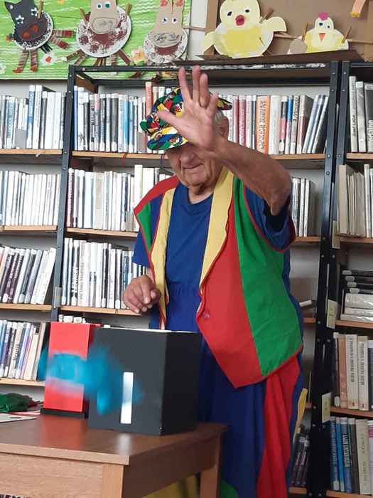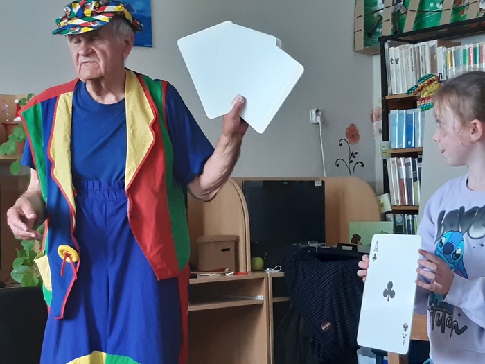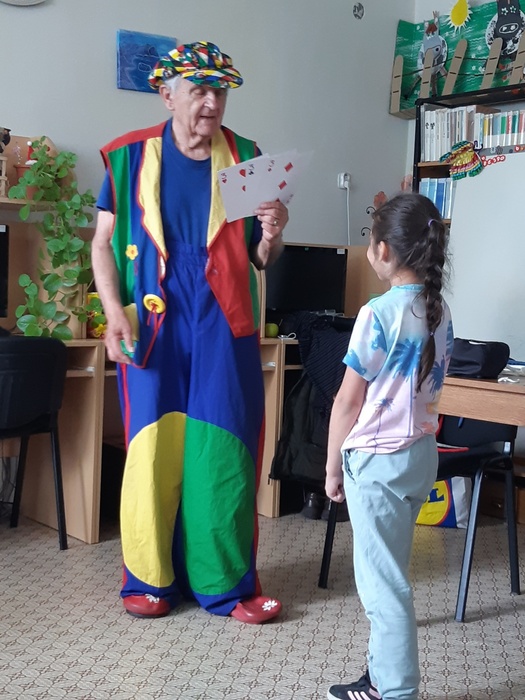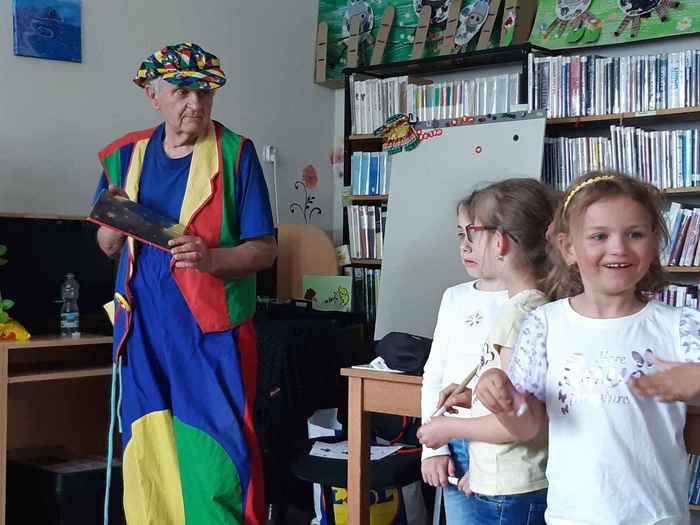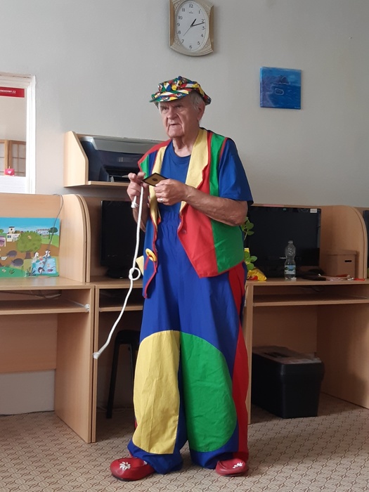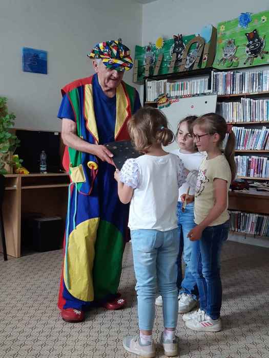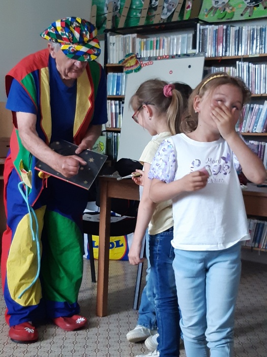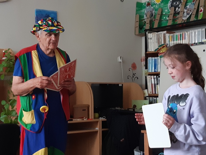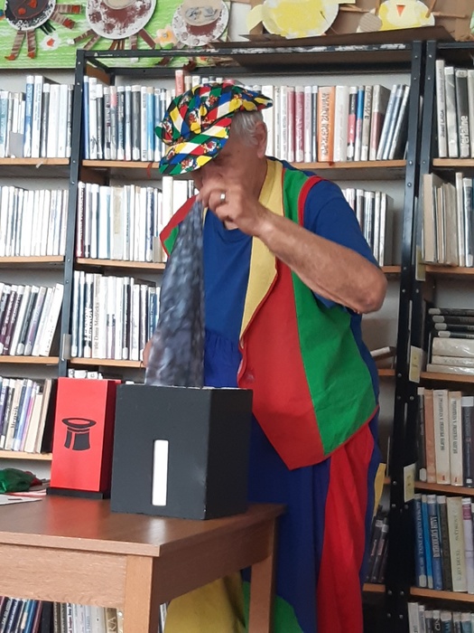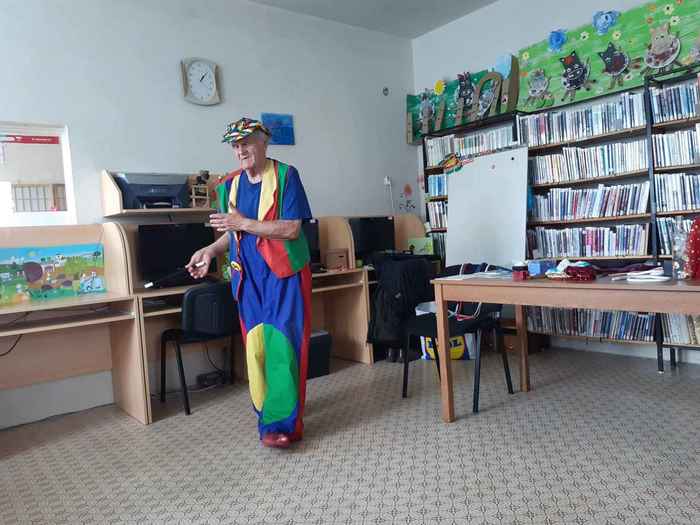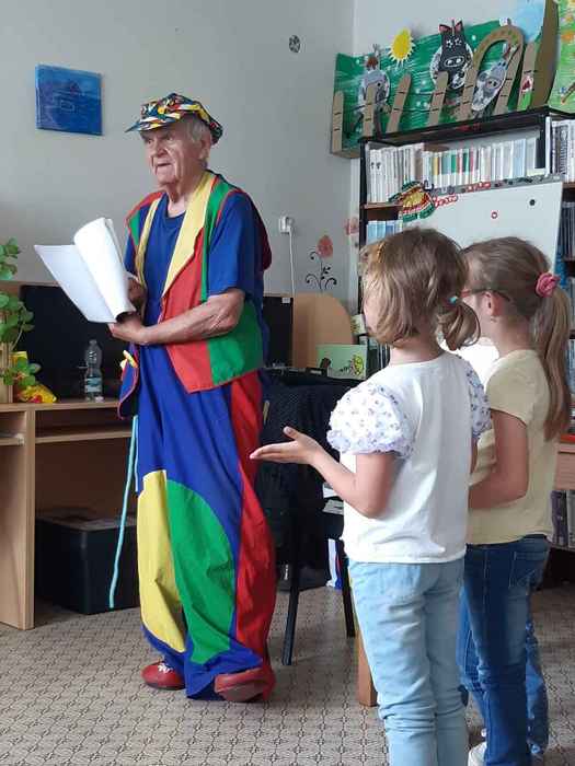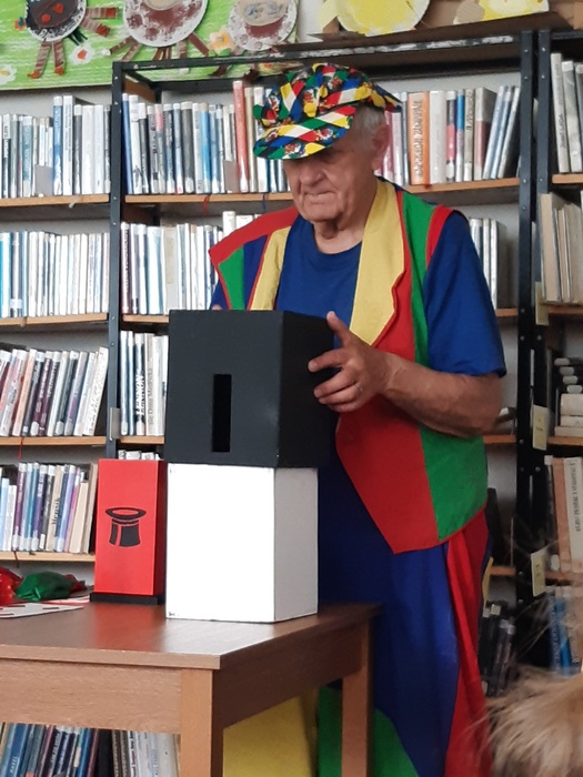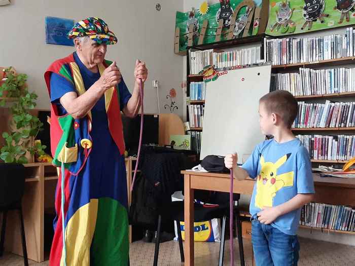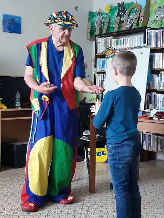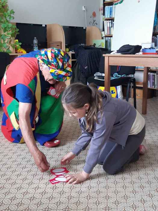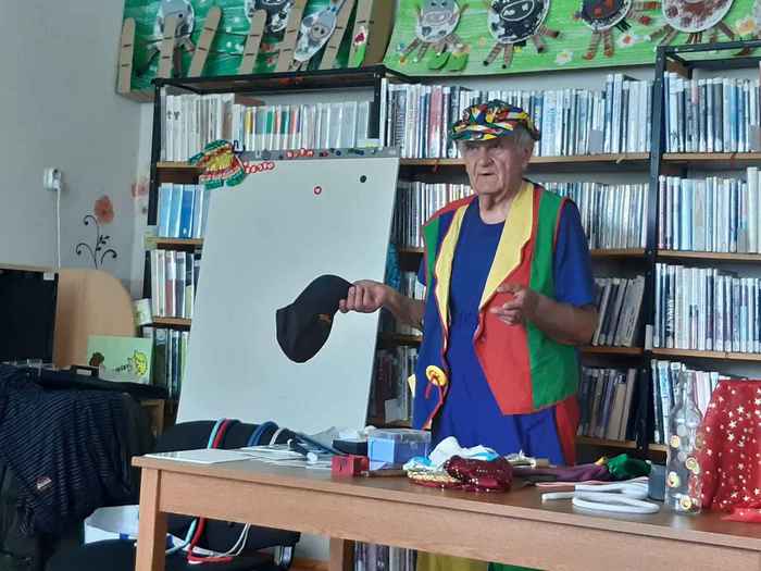 Dne 20. 5. 2025 jsme se s dětmi ze školní družiny vydaly na mimořádnou návštěvu místní knihovny. Nešlo však o obyčejnou návštěvu plnou knih. Tentokrát na nás čekalo skutečné překvapení. Knihovna přivítala speciálního hosta – kouzelníka, který připravil pro děti představení plné zábavy, smíchu a překvapení. Kouzelník do vystoupení zapojil i samotné děti, které mu pomáhaly s jednotlivými triky. Čarovalo se s hůlkou, kšiltovkou, provázky, šňůrkami, šátky a nesměla chybět kouzla s kartami. Obzvlášť zdařilými kousky bylo kouzlení s omalovánkami a obarvování pejska puntíky. Pan kouzelník nás všechny naučil prstový trik, který jsme si zkoušeli tak dlouho, než jsme ho všichni zvládli.