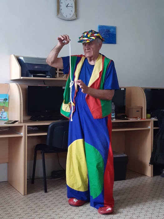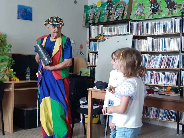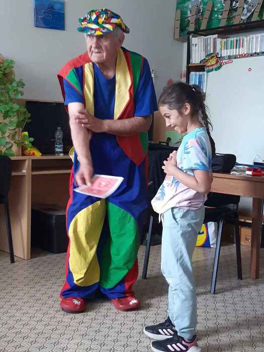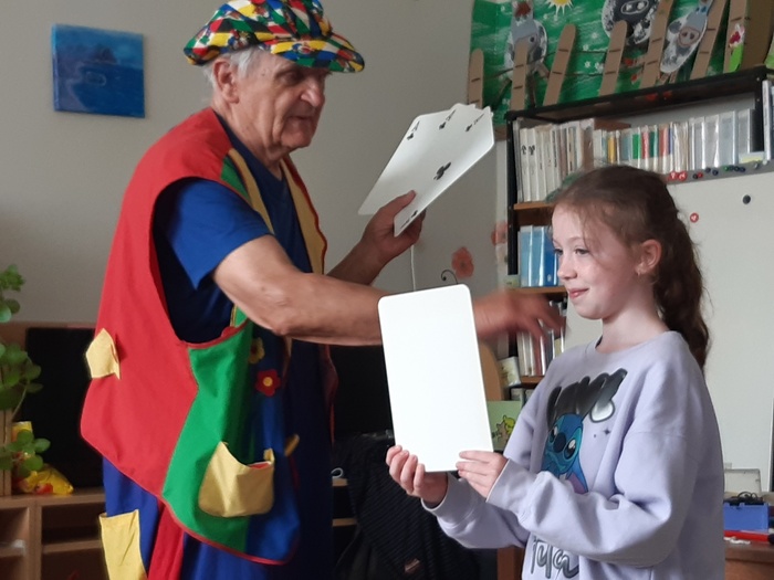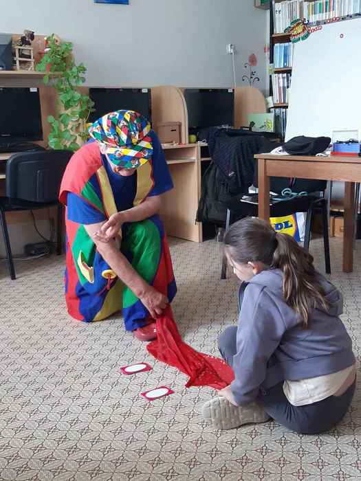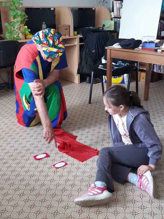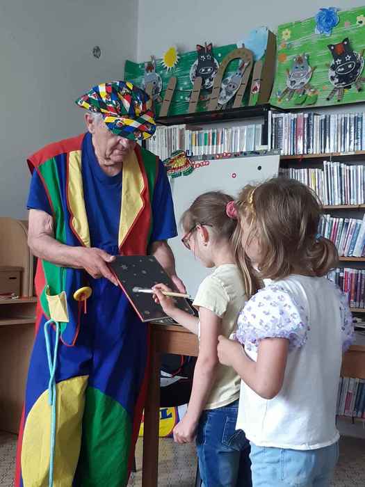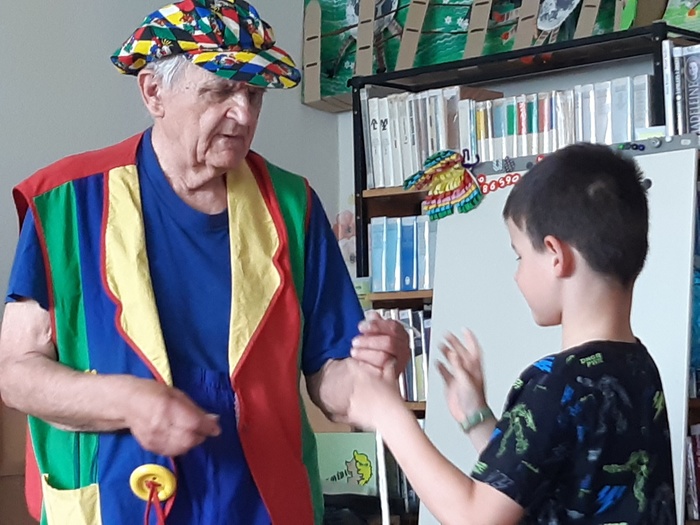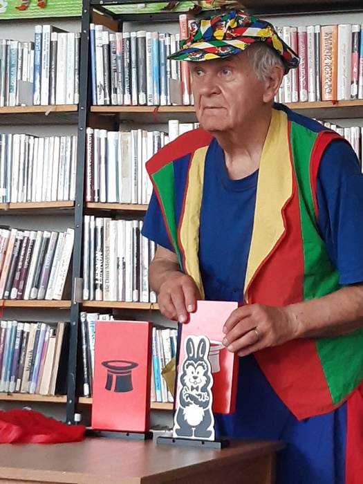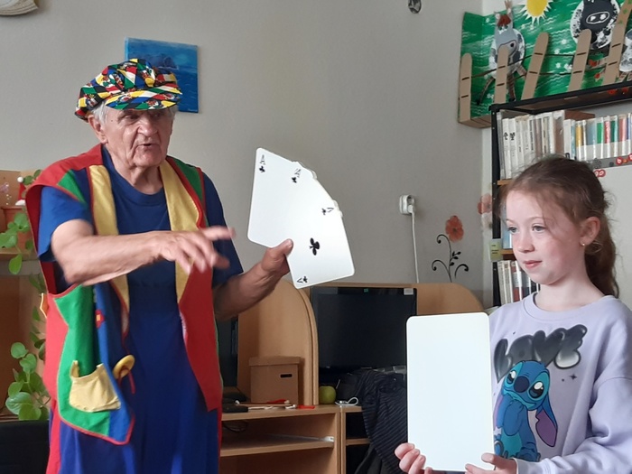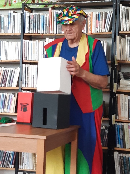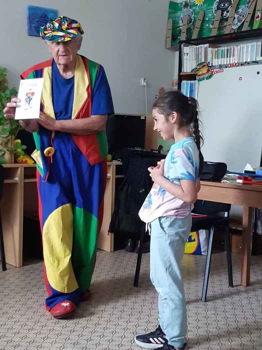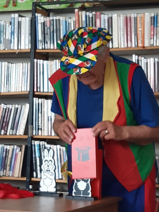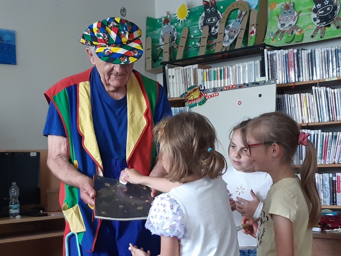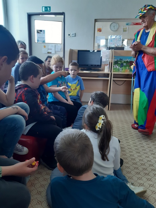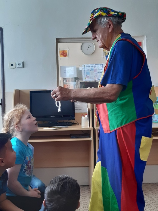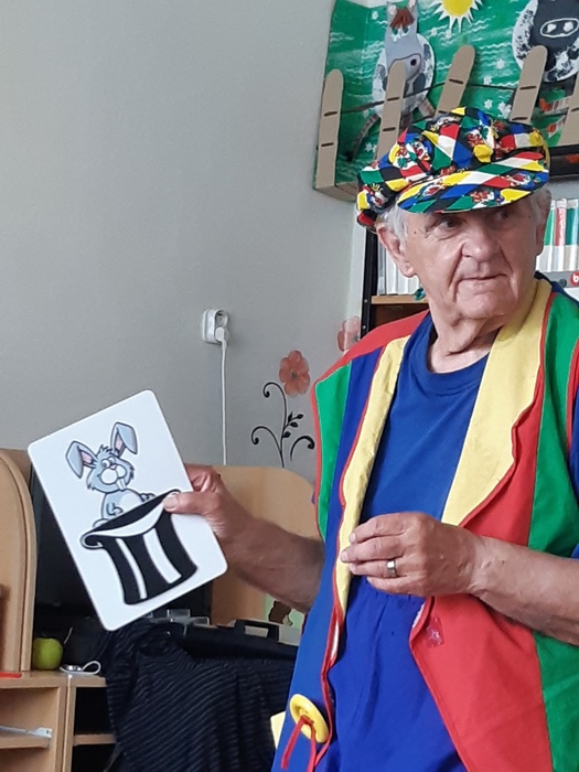 Dne 20. 5. 2025 jsme se s dětmi ze školní družiny vydaly na mimořádnou návštěvu místní knihovny. Nešlo však o obyčejnou návštěvu plnou knih. Tentokrát na nás čekalo skutečné překvapení. Knihovna přivítala speciálního hosta – kouzelníka, který připravil pro děti představení plné zábavy, smíchu a překvapení. Kouzelník do vystoupení zapojil i samotné děti, které mu pomáhaly s jednotlivými triky. Čarovalo se s hůlkou, kšiltovkou, provázky, šňůrkami, šátky a nesměla chybět kouzla s kartami. Obzvlášť zdařilými kousky bylo kouzlení s omalovánkami a obarvování pejska puntíky. Pan kouzelník nás všechny naučil prstový trik, který jsme si zkoušeli tak dlouho, než jsme ho všichni zvládli.