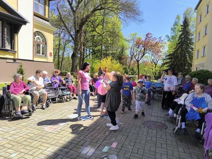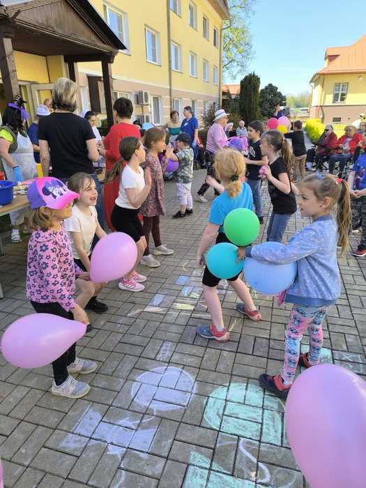 Svítilo sluníčko, které podpořilo dobrou náladu. Děti seniorům zatancovaly, křídami nakreslily obrázky na zámkovou dlažbu, což jim bude nějaký čas zdobit cestu do zahrady. Velkou radost u dětí vyvolalo nafukování balónků a jejich následné „pinkání“. Na řadu přišly i opečené buřty, které všem chutnaly. Po jídle se zapálila hranice s čarodějnicí a děti předaly místním obyvatelům domova ptačí budky, které pro ně vyrobily pod vedením p. vychovatelky Růženy Vágnerové děti ze školní družiny I.