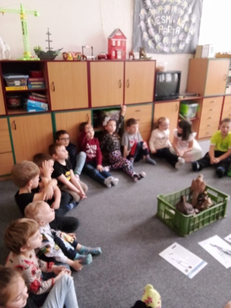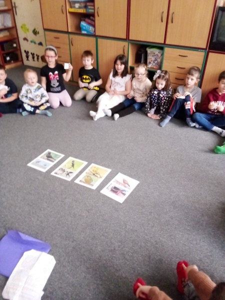9. 1. nás opět navštívila paní Dvořáková s programem ,, Ptáčci zpěváčci". Děti se seznámily s nejznámějšími druhy tažných i přezimujících ptáků, s jejich životními návyky a potřebami, měly možnost si prohlédnout několik vycpaných exemplářů a pohrát si s peříčky. Nakonec si vyrobily dalekohled a hledaly ukryté ptáčky.