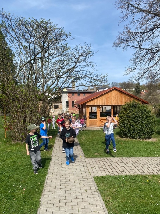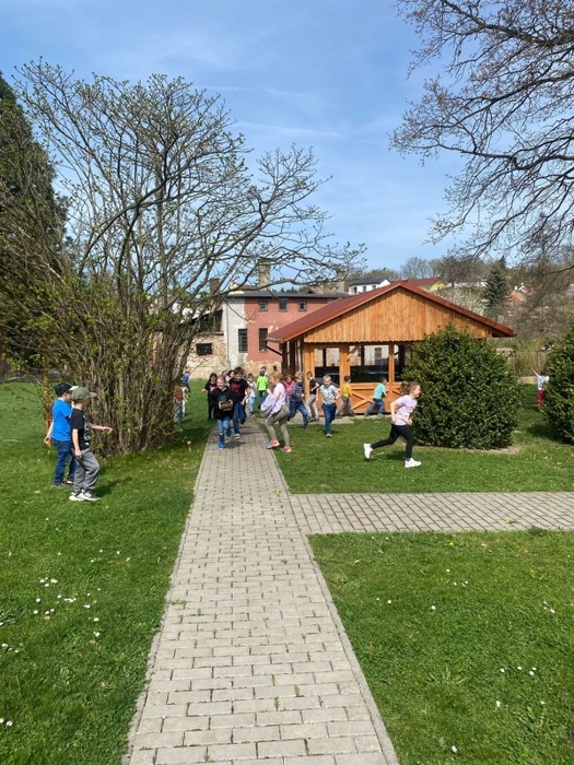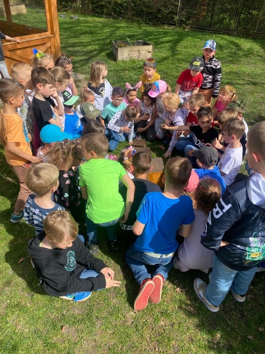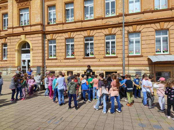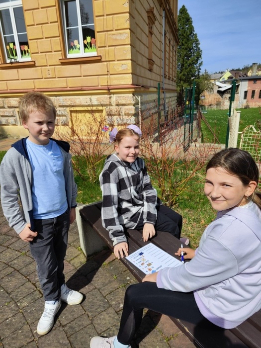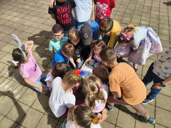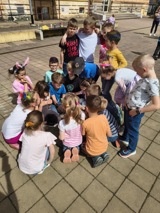 Ve středu 16. dubna jsme ve školní družině dostali dopis od králíčka Oskara. Psal v něm, že v noci poskakoval kolem školy a schoval tu pro nás velikonoční poklad. Abychom zjistili, kde velikonoční poklad je, museli jsme společně splnit čtyři úkoly. Splněný úkol nám vždy prozradil indícii a po spojení všech nám vyšlo místo ukrytého pokladu.