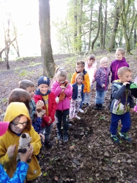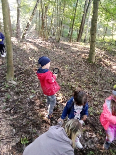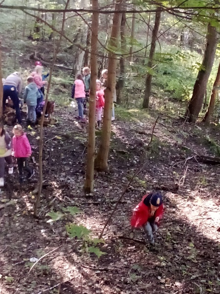 23.9. nás letos poprvé návštívila p. Dvořáková z ekocentra Tři Sekery. Pro děti měla připravený program na téma ,,Život v lese." Určovali některé druhy stromů, pracovali s lupou - pozorovali drobné živočichy, děti si vytvořily otisk kůry a podzimní paletu z přírodnin.