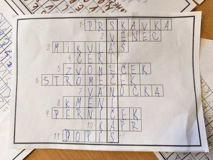Prosinec byl spojený s adventním časem. Děti vyráběly papírové hvězdy, zvonečky, andílky a sněhuláky. Také vyrobily vánoční přáníčka pro klienty Sociálních služeb v Kynšperku nad Ohří, p. o. Na Mikuláše si děti zahrály „Běhací křížovku“ a v místním kině zhlédly pohádku. Ve vánoční dílničce si vyrobily náramky z korálků. Tato aktivita u dětí vyvolala obrovskou radost a nadšení. Vánoční bojovka byla příjemným zpestřením adventního času. Odměnou za vyluštění tajenky jim byla drobná sladkost. Děti si ji opět užily.