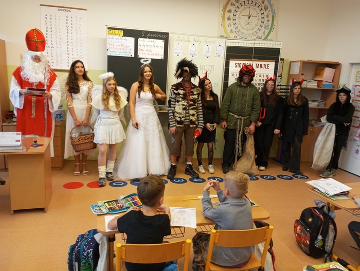 Děti se těšily na Mikuláše s anděly a trochu se obávaly čertů. Někteří žáci byli pochváleni za aktivitu při vyučování. Ti, co občas vyrušovali, se sami Mikulášovi přiznali. Všichni byli potěšeni sladkou odměnou od Mikuláše.