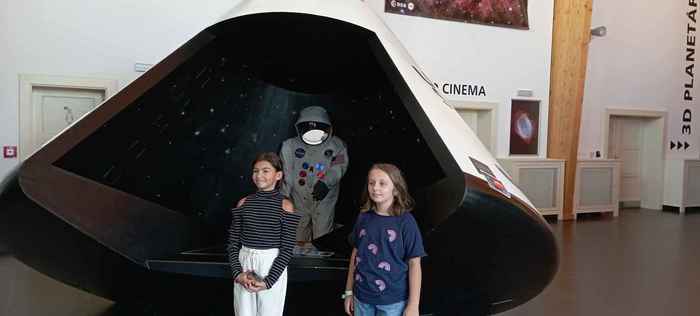Po výborném obědě v místní restauraci jsme se přesunuli do planetaria. Zde naši malí badatelé objevovali nové poznatky o vesmíru, seznámili se s pokrokem llidstva v oblasti kosmického výzkumu a na vlastní kůži si zkusili, kolik by vážili na různých planetách.