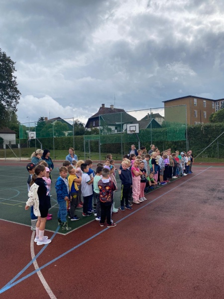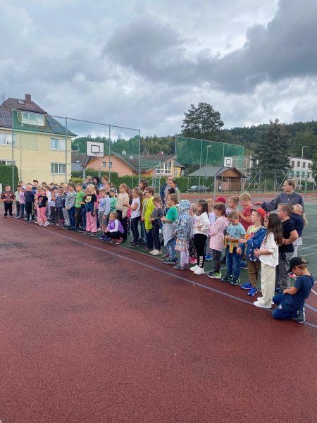 Začátkem školního roku se účastníci školní družiny sešli na školním hřišti, aby se společně přivítali a seznámili s tím, co nás čeká v tomto školním roce. Všichni jsme se shodli, že jsme kamarádi a že si v družině chceme hrát a užít si legraci.